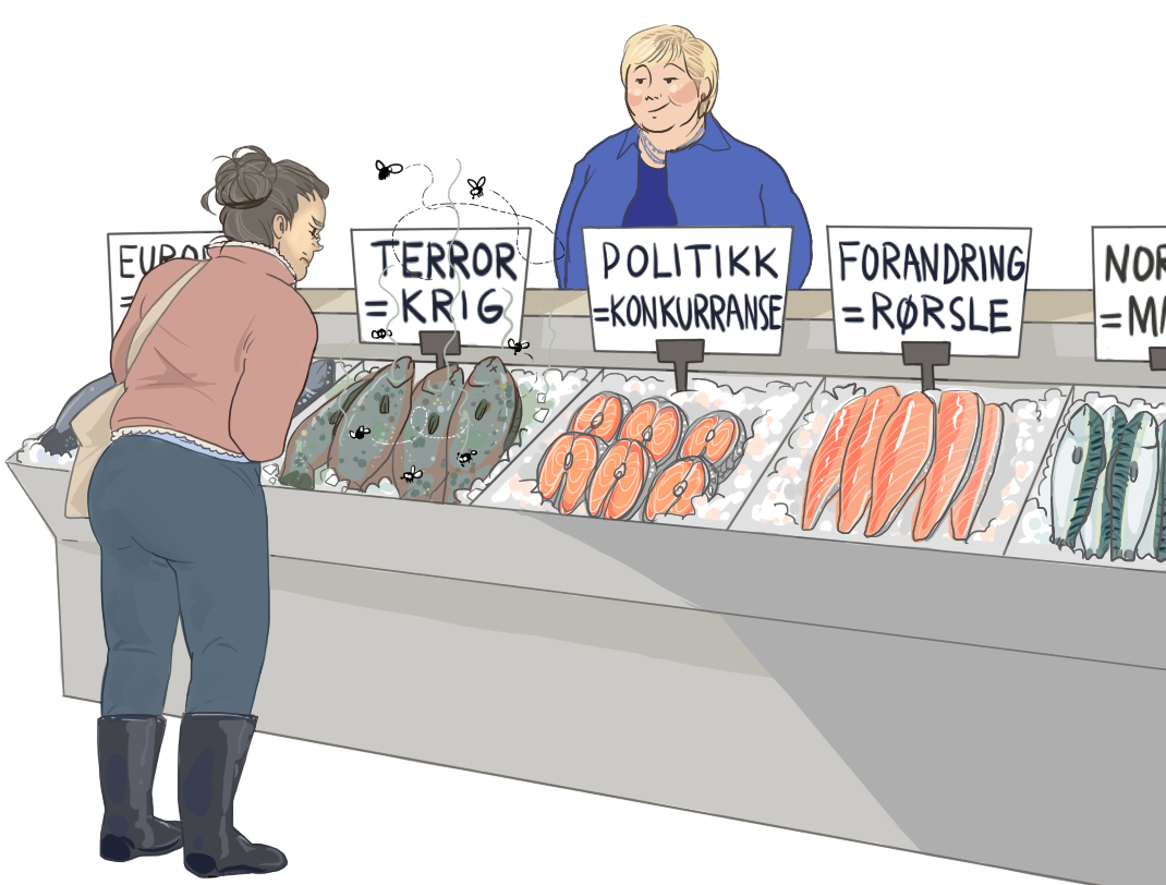 Det siste året har eg skrive masteroppgåve om korleis norske politikarar snakkar om terror, forstått som politisk motivert valdsbruk. Eit av dei tydelegaste funna mine er at dei svært ofte framstiller terror som ein krig der Noreg er ein av krigspartane. Til dømes kan dei finne på å snakke om at me skal «bekjempe» terror og terroristar, eller at terroristane er «hevnlystne», og at dei går til angrep på Noreg og norske verdiar.