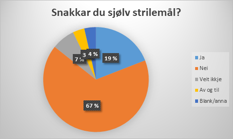 Av desse grunnene vart det også viktig å få greie på korleis ungdommane vil beskriva måten dei sjølve snakkar på. Dette svarte dei på i følgjande spørsmål: «Snakkar du sjølv strilemål? (Viss ikkje kva dialekt snakkar du?)»