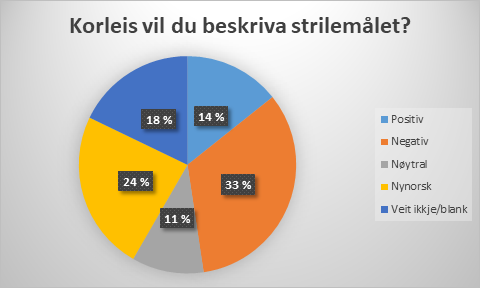Figuren nedanfor gir ei oversikt over svara til elevane om korleis dei vil beskriva strilemålet.