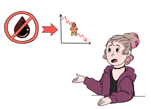 Eva: Det blir arbeidsplasser, men til slutt blir vi jo tom for olje, så det er jo ikke veldig bærekraftig. Til slutt tar det jo slutt. Og da mister vi arbeidsplassene igjen. Så man får arbeidsplasser en stund, da. Men det tar jo slutt, og da er det ikke så veldig bærekraftig over lengre tid.