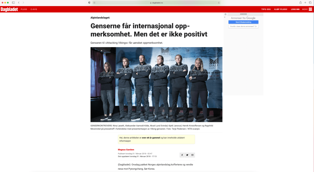 ᛏ og ᛉ på genserne til alpinlandslaget fikk mange til å tenke på det runebaserte symbolspråket som Nazi-Tyskland brukte, og som er videreført gjennom logoer og emblemer til nynazistiske grupperinger i ulike land. Spesielt ᛏ, den såkalte Tyr-runen, ble kommentert. Runen er for eksempel sentral i Den nordiske motstandsbevegelsens visuelle symbolikk – det svarte pilelignende tegnet er omringet av hvite konturer, framstilt mot grønn bakgrunn. En artikkel i VG 12. oktober 2017 tok opp gensersaken og koblingen med nazistisk symbolikk. Samtidig kom artikkelen inn på spørsmålet om misbruk av historiske tegn fører til at de dermed har gått tapt for fellesskapet.