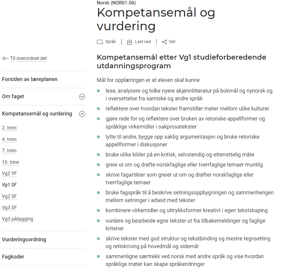 I norskfaget finst det kompetansemål som nettopp skal støtte elevane i å bli meir bevisste på korleis det å vere fleirspråkleg kan vere ein ressurs for dei sjølve og samfunnet. Mellom anna skal elevane kunne «samanlikne særtrekk ved norsk med andre språk og vise korleis språklege møte kan skape språkendringar» (kompetansemål for vg1 studieførebuande utdanningsprogram og vg2 yrkesfaglege utdanningsprogram). I Overordna del av læreplanverket, som kommuniserer verdigrunnlaget for alle fag, står det også at «alle elevar skal få erfare at det å kunne fleire språk er ein ressurs i skolen og i samfunnet» (under punktet «Identitet og kulturelt mangfald»).