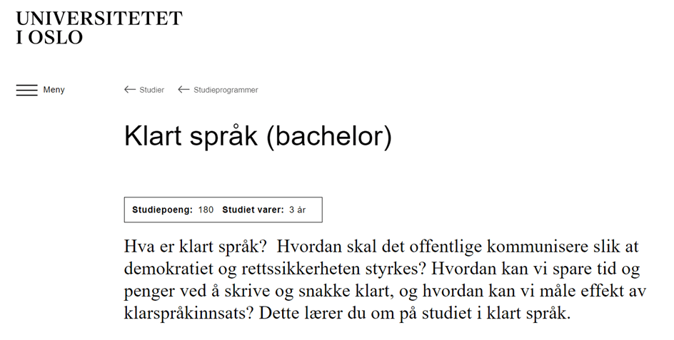 Du kan lese mer om bachelorstudiet i Klart språk på UiOs sider, som du finner her.