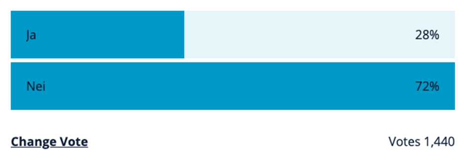Som sagt vet vi ikke hvor utbredt bruken av hen er i dag, men i januar 2020 gjennomførte Nettavisen en uoffisiell spørreundersøkelse i Norge i forbindelse med en artikkel som handlet om at det kjønnsnøytrale pronomenet they ble kåret til tiårets ord av American Dialect Society. Denne undersøkelsen viste at bare 28 prosent av de 1440 stemmegiverne hadde opplevd at noen bruker et kjønnsnøytralt pronomen (se bildet under). Tallene sier ikke noe om hvor stemmegiverne bor, hvor gamle de er, hvordan de definerer kjønn, eller annen personlig informasjon som forteller oss noe om hvem de er. Undersøkelsen skiller heller ikke mellom om bruken gjelder hen eller de/dem, som også er et kjønnsnøytralt pronomen som brukes i det norske språket. Sistnevnte pronomen blir omtalt i mitt neste Språkprat-innlegg, som sammen med dette innlegget utgjør en miniserie om kjønnsnøytrale pronomen i dag.