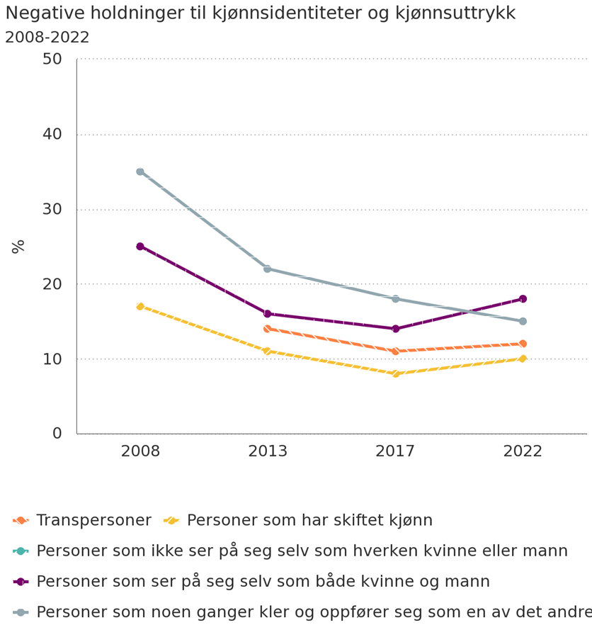 De som er positive til hen, eller til kjønnsnøytrale pronomen generelt,løfter frem at et kjønnsnøytralt pronomen i norsk gir folk mulighet til selvrepresentasjon og identitetsuttrykk gjennom språket. Mange definerer seg ikke som mann eller kvinne.[i] Da er det ikke nok at språket kun har han og hun som tilgjengelige pronomen. Å ta inn et kjønnsnøytralt pronomen gjør med andre ord språket mer inkluderende og anerkjenner kjønnsmangfoldet som eksisterer, mener mange. I masteroppgaven min om kjønnsnøytrale pronomen i engelsk konkluderte jeg også med at økt bruk av kjønnsnøytrale pronomen og positive holdninger til dem i stor grad kan tolkes som at folks forståelse av kjønn er romsligere enn før. En fersk undersøkelse fra Bufdir viser at nordmenns holdninger til LGBTQ+-grupper har blitt mer positive det siste tiåret. Men 18 prosent av de spurte i 2022 er likevel negative til mennesker som «ser på seg selv som både kvinne og mann». Vi kan kanskje anta at den samme gruppen kan ha lignende holdninger til kjønnsnøytrale pronomen fordi slike ord utfordrer tankegangen om at kjønn deles opp i mann eller kvinne.