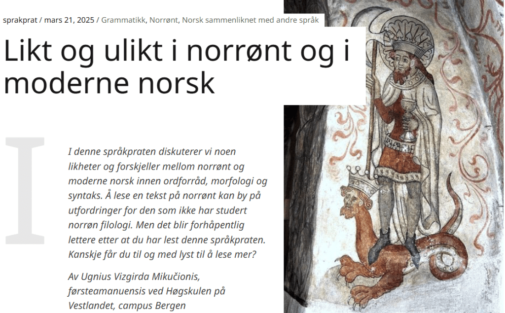 Du har kanskje sett norrøne tekster i bøker, på nettsider eller på bilder. Men visste du at skriftspråket i håndskriftene ser nokså annerledes ut enn det vi som oftest ser i moderne utgaver av norrøne tekster? Og visste du at det er flere måter å gjengi norrøne tekster på? I denne språkpraten diskuterer vi noen sider ved norrønt skriftspråk og ulike utgaver av norrøne tekster.