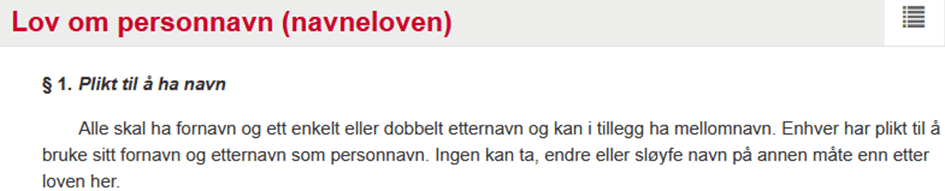 I Noreg fekk vi faste etternamn litt etter litt frå 1500-talet og mest frå rundt 1900 og seinare. Det var først blant samar, for eksempel variantar av Utsi, dernest utanlandske etternamn med innvandring, som Schmidt. Seinare kom sen-namn med grunnlag i fedrenamn og etternamn frå gardsnamn, som Olsen og Haugen. Faste etternamn for alle blei lovfesta i 1923 i Lov om personnamn (namnelova), som du finn i nyare versjon her.